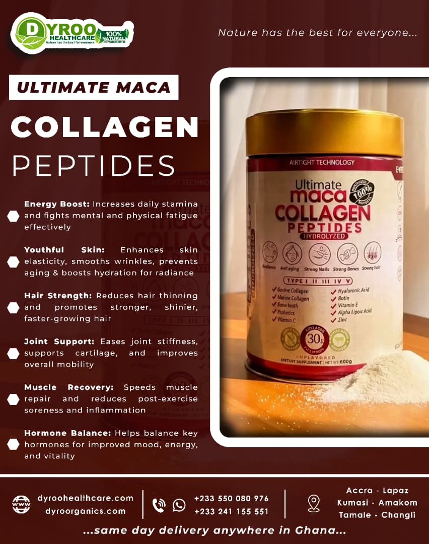 Searching for where to buy Ultimate Maca Collagen in Ghana? Want to know Price of Ultimate Maca Collagen in Ghana? Order Ultimate Maca Collagen right here on www.dyroohealthcare.com | www.dyroorganics.com. Simply contact us on 0550080976 | 0241155551 – Whatsapp +233550080976 for your supplements. We do same day delivery anywhere in Ghana.